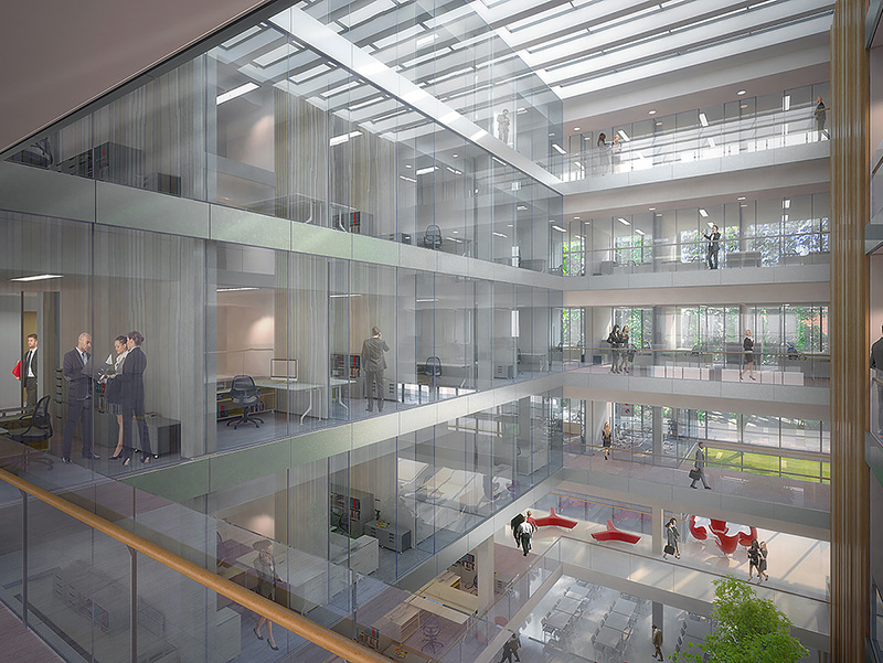 Allied specialises in bespoke internal glazed atrium facades providing natural light to the core of the building through internal